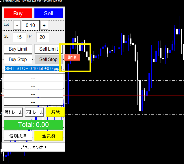 MT4 裁量支援ソフト「ワンクリックオーダーパネル」